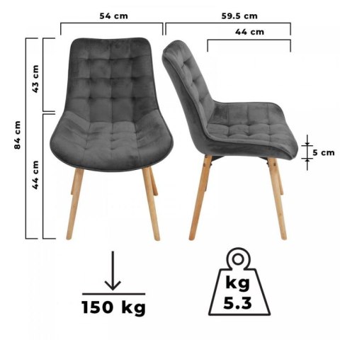 - łączna waga jednego krzesła: ok. 5,3 kg