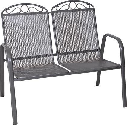 Ławka ogrodowa wykonana z metalu z wypełnieniem drucianym. Górna część ławki ozdobiona jest ładnym metalowym ornamentem, dzięki czemu ławka jest ciekawsza. Ławka jest dwuosobowa.