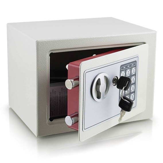 Dzięki jego wielkości jest bardzo dyskretny, zapewnia oszczędność miejsca przy instalacji. Sejf można bezpiecznie zamontować w miejscu szafki na ścianie itp.Otwarcie jest możliwe tylko poprzez wprowadzenie osobistego numeru identyfikacyjnego lub za pomocą dołączonego klucza. Drzwi z zamknięciem podwójnym zapewniają bezpieczeństwo przed nieuprawnionym użyciem, próbą otwarcia.