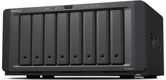 NAS Synology DS1823xs+; Tower; 8x (3.5" SATA HDD/2.5" SATA SSD); AMD Ryzen V1780B, 8 GB DDR4 ECC SODIMM (max. 32GB), 2x 1GbE RJ-