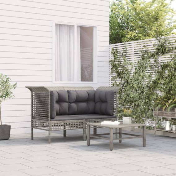 Narożne moduły sofy z poduszkami, 2 szt., szare, polirattan