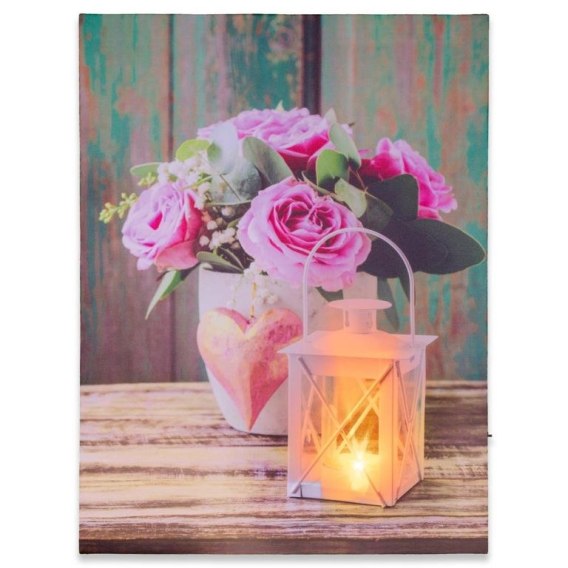 Obraz na ścianę przedstawiający różę i latarnię, 1 LED, 30 x