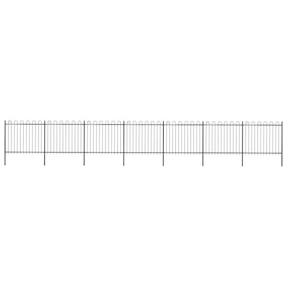 Stwórz eleganckie ogrodzenie wokół swojego ogrodu lub domu! To ozdobne, stalowe ogrodzenie, składające się z 7 paneli i 8 słupków, ma długość całkowitą 11,9 m. Utworzy mocną, bezpieczną i niewymagającą konserwacji granicę Twojego ogrodu, siedliska lub terenu komercyjnego.