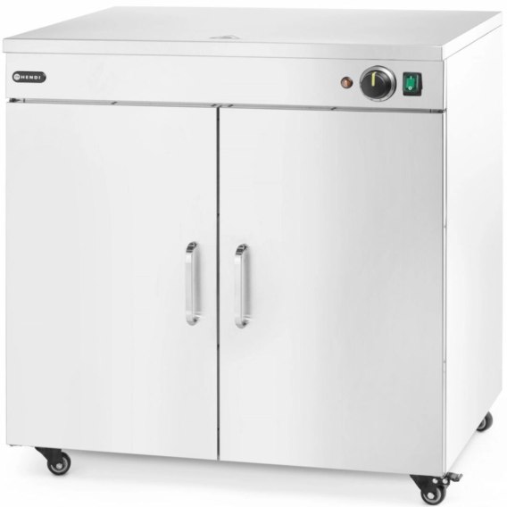 Podgrzewacz do talerzy podwójny firmy HENDI utrzymuje stałą temperaturę do 108 szt. talerzy obiadowych ø24 cm (64 szt. talerzy do pizzy ø33 cm) jednocześnie i sprawia, że są od razu gotowe do serwowania na nich dań. Pomaga utrzymać ciepło żywności w drodze od kuchni do stołu klienta i dzięki temu zachować cały smak dania. Podgrzewacz do talerzy doskonale sprawdzi się w restauracjach, stołówkach czy na imprezach cateringowych, a więc wszędzie tam, gdzie przygotowuje się i serwuje duże ilości posiłków naraz. Urządzenie posiada przycisk włączania/wyłączania z lampkami kontrolnymi.