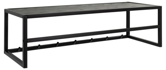 Półka z wieszakiem Seaford to świetny pomysł na stworzenie dodatkowego miejsca do przechowywania w przedpokoju. Na półkę składa się konstukcja z metalu malowanego proszkowo na kolor czarny oraz płyta MDF w okleinie w kolorze czarnym. Półka posiada siedem haczyków na ubrania oraz metalową poprzeczkę, na której można zawiesić takie elementy odzieży jak np. kurtki. Ilość kartonów: 1 Wymiary kartonów: 80,5x32x6,5cm Waga kartonów: 4,5kg