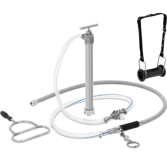 Zestaw do wlewów dożwaczowych marki Wiesenfield umożliwia podanie wystarczającej ilość leków, składników odżywczych i płynów. Jest łatwy w użyciu, odporny na odruchy żucia i higieniczny. Dzięki niezawodnej pompie można dostarczyć niezbędne składniki bezpośrednio do żołądka zwierzęcia. Sprzęt zawiera wszystko, czego potrzeba do pojenia krów: dwa węże, które w razie potrzeby odłącza się za pomocą złączki, sondę żołądkową i wydajną pompę. Rurka żywieniowa jest wyposażona w zawór. Jeśli otworzy się zawór i poczuje silny zapach, oznacza to, że sonda znajduje się w żwaczu, a nie w przełyku. W ten sposób wiadomo, że należy zmienić pozycję sondy, żeby uniknąć pomyłek. Konstrukcja zapobiegająca zagryzieniu chroni przed uszkodzeniem rurek pompy po włożeniu. Wystarczy użyć ręczną pompkę, aby skierować płyn wzbogacony lekami, elektrolitami lub minerałami bezpośrednio do żołądka. Hamulec nosowy i rurka gardłowa umożliwiają szybkie pojenie krów lub cieląt. Zestaw wykonany jest z wysokiej jakości materiałów. Sondę zrobiono ze stali nierdzewnej przeznaczonej do kontaktu z żywnością i jest całkowicie nieszkodliwa dla zwierząt gospodarskich. Wzmocnione węże są trwałe i bezpieczne dla zwierząt. Należy upewnić się, że wszystkie elementy zostały dokładnie wyczyszczone po wykonaniu wlewów, aby zapobiec przenoszeniu się chorób na inne zwierzęta.