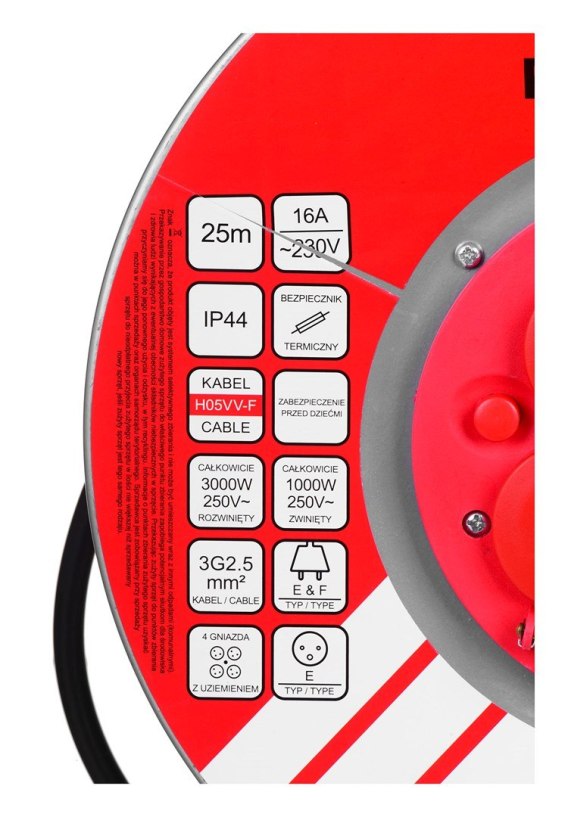 | Ostrzeżenia | Upewnij się, że przedłużacz jest w pełni rozwinięty przed użyciem. |