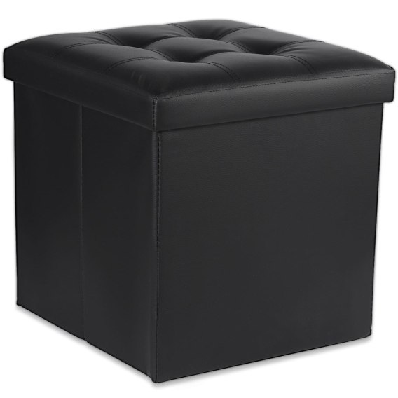 Pufa składana L z guzikami - 38x38x38cm ekoskóra czarna