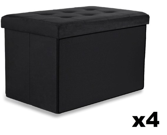 Pufa składana XL z guzikami - 60x38x38cm aksamit czarna x 4