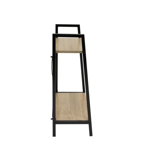 Regał Cilyan to wyjątkowy mebel do nowoczesnych i loftowych pomieszczeń. Regał, dzięki połączeniu czarnego koloru oraz koloru jasnego dębu, prezentuje się wyjątkowo lekko i zgrabnie. Proszkowo pomalowana na czarno rama mebla charakteryzuje się dużą trwałością, odpornością na korozję, wysoką temperaturę oraz uszkodzenia mechaniczne, dzięki czemu znacznie podnosi walory użytkowe i estetyczne mebla. Z kolei dwie półki to wysokogatunkowa płyta MDF pokryta laminatem imitującym drewno, dzięki czemu powierzchnie półek są gładkie i wytrzymałe. Prosta konstrukcja wsparta została stalowymi prętami, które prócz funkcji wspornika są również ciekawym elementem dekoracyjnym. Cilyan może pełnić funkcje szafki nocnej, półki na buty lub regału w biurze. Max. obciążenie na jedną półkę: 10 kg. Odległość między półkami: 46cm