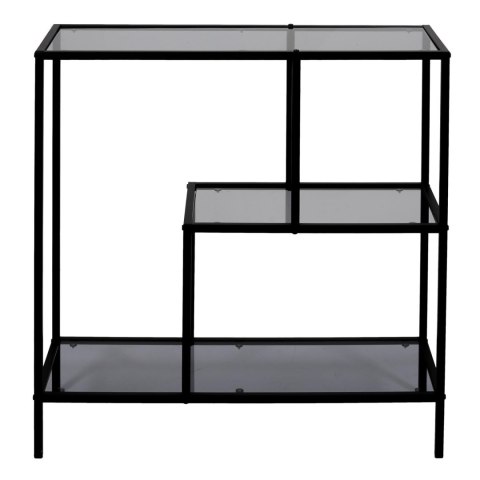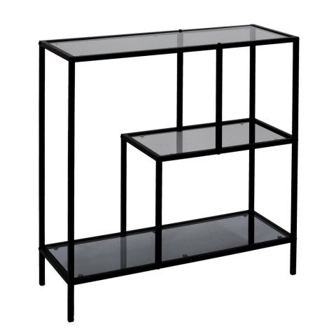 Regał Edison to połączenie czarnej metalowej konstrukcji ze szklanymi półkami o dymionym odcieniu. Hartowane szkło półek regału jest nie tylko bezpiecznym mateirałem ale również łatwym w utrzymaniu w czystości. Regał o niesymetrycznej budowie jest nie tylko dobrym miejscem na msiążki, pamiątki lub kwiaty. Sprawdzi się on również jako element oddzielający salon od jadalni w niedużym wnętrzu. Regał wymaga samodzielnego montażu. Max obciążenie na 1 półkę 5kg. Wymiary kartonu: 37x14x91,5cm. Waga regału 12kg