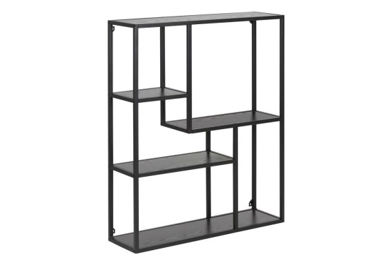 Regał na książki Oxford to kolejny element seri Oxford. Meble te charakteryzują się metalową konstrukcją oraz ciekawymi półkami. Regał VIII to pułka, która przystosowana jest do zawieszenia na ścianie. Jej pomalalowany na czarno konstrukcja idealnie współgra z oklejonymi czarnymi półkami.