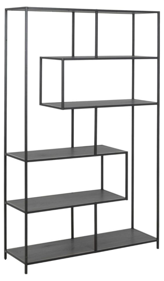 Regał Seaford XV to prosty, minimlistyczny mebel do nowoczesnych wnętrz. Posiada szkielet z malowanego proszkowo metalu i stylowe, asymetryczne półki z płyty MDF. Regał opiera się na czterech krótkich nóżkach. Będzie praktyczną ozdobą salonu, sypialni czy gabinetu. Ilość kartonów: 1 Wymiary kartonów: 198,1x38x11,6cm Waga kartonów: 28,1kg