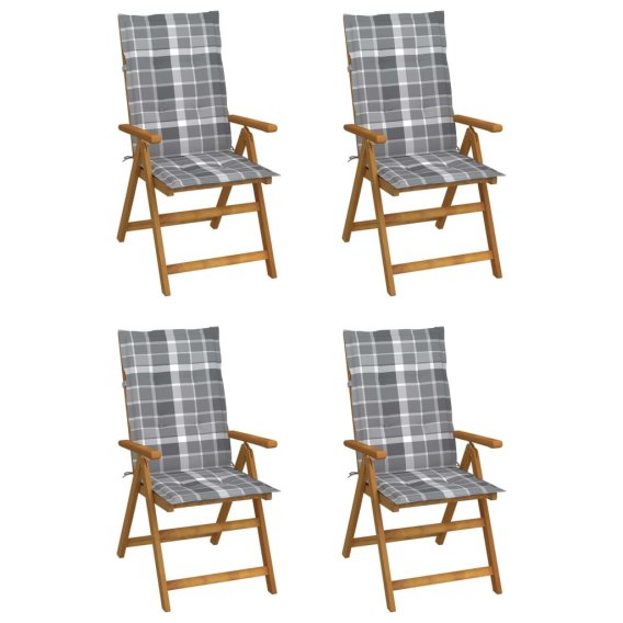 Rozkładane krzesła ogrodowe z poduszkami, 4 szt., lita akacja