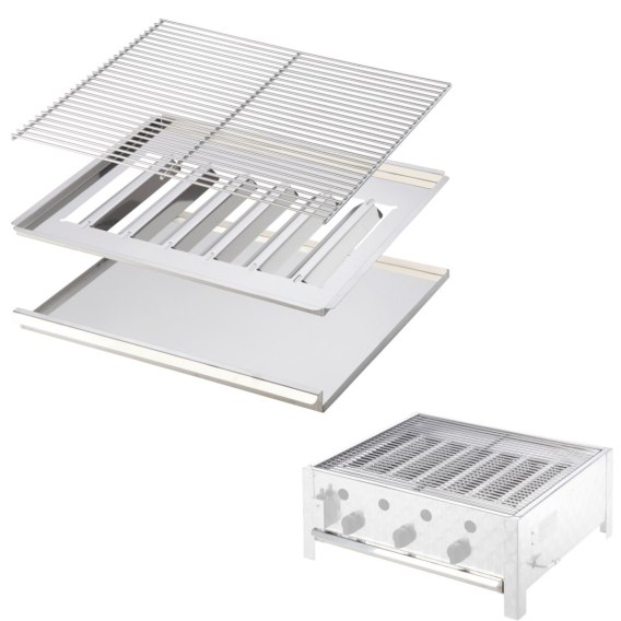 Profesjonalny trzyczęściowy ruszt do grilla gazowego umożliwi na przygotowanie dań wysokiej jakości zarówno w domowej kuchni, jak i zakładzie gastronomicznym. Duża powierzchnia jest przystosowana do smażenia kilku potraw jednocześnie. Zestaw składa się z trzech elementów: rusztu, tacki ociekowej i pokrywy, która zapobiega zalaniu palnika np. przez kapiący tłuszcz.