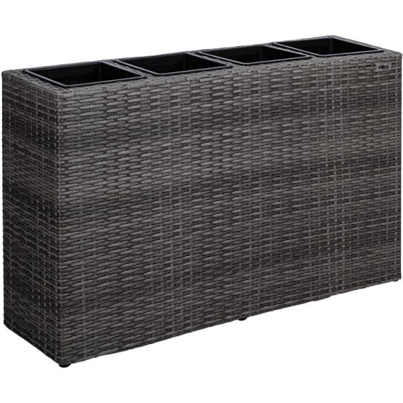 Doniczka z 4 rabatami wewnętrznymi idealnie nadaje się do sadzenia w ogrodzie, na tarasie, na balkonie czy w mieszkaniu. Doniczka może służyć również jako przegroda pokoju. Polyrate z tworzywa sztucznego wyróżnia się doskonałymi właściwościami: jest odporny na warunki atmosferyczne, promieniowanie UV, jest łatwy do czyszczenia. Ten zestaw doniczek składa się z ramy z polirattanu i czterech wyjmowanych doniczek z tworzywa sztucznego z zamykanym odpływem wody.