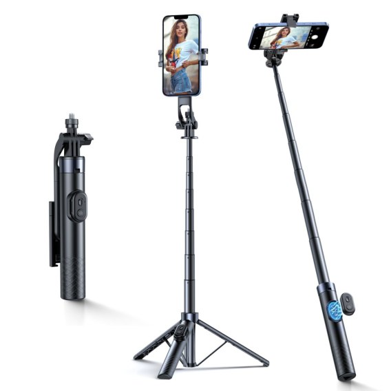Wozinsky WC1Y70S to teleskopowy selfie stick z funkcją statywu, zaprojektowany do nagrywania wideo, robienia zdjęć i transmisji na żywo. Konstrukcja 2w1 umożliwia korzystanie z urządzenia zarówno jako ręcznego uchwytu, jak i stabilnego tripoda. Regulowana wysokość do 170 cm ułatwia kadrowanie, a pilot Bluetooth pozwala na zdalne wykonywanie zdjęć bez dotykania telefonu.