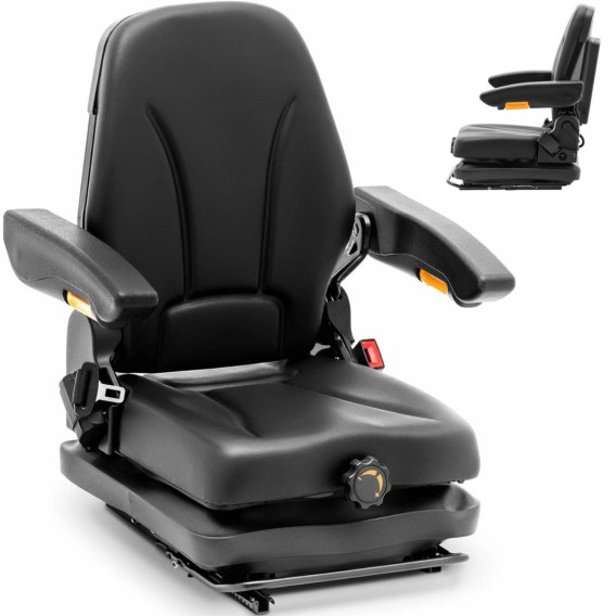 Siedzenie do ciągnika marki hillvert zapewnia komfort nawet na długich dystansach. Dzięki wyselekcjonowanym materiałom i solidnemu wykonaniu fotel idealnie nadaje się do ciągników lub kosiarek, a także wózków widłowych oraz innych maszyn. Zaleca się wymianę fotela po około 1000 roboczogodzinach. Dzięki uniwersalnemu i łatwemu montażowi można go wymienić sprawnie i szybko. Wyściółka z pianki zachowuje swój kształt również pod dużym obciążeniem. Siedzisko o wymiarach 42 x 47 cm i udźwigu 130 kg zapewnia komfort nawet po wielu zastosowaniach. Konstrukcja ramy wykonana jest ze stali, co gwarantuje długą żywotność siedzenia. Powierzchnia PVC jest wyjątkowo wytrzymała, wodoodporna i jednocześnie łatwa do czyszczenia. Siedzenie posiada zawieszenie o wysokości 50 mm oraz wygodne podłokietniki. Całe siedzisko można przesunąć do przodu lub do tyłu łącznie o 16,5 cm oraz ustawić oparcie pod kątem 30 - 90deg;. Wyposażenie modelu uzupełnia pas bezpieczeństwa
