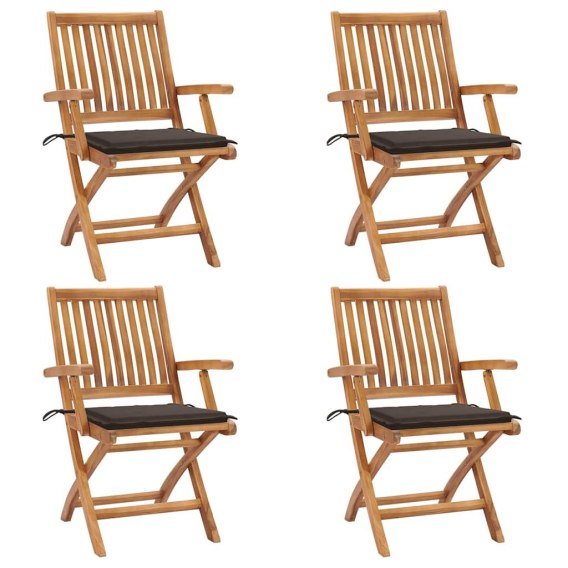 Składane krzesła ogrodowe z poduszkami, 4 szt., drewno tekowe