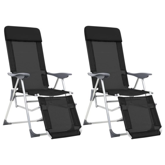 • Składane krzesła turystyczne z podnóżkami, 2 szt., czarne