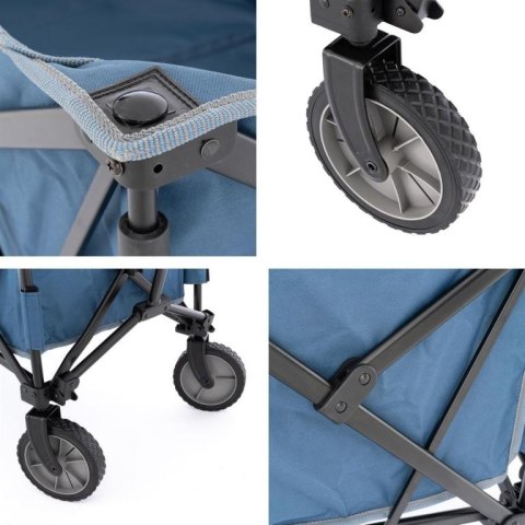 Dzięki naszemu stabilnemu i poręcznemu wózkowi możesz łatwo i wygodnie przenosić bagaż na kempingu, sprzęt piknikowy podczas spaceru, sprzęt plażowy. Wodoodporny, ciasno tkany pokrowiec z tkaniny i solidne wykończenie gwarantują ładowność do 200 kg. Kolejna wyjmowana składana mata podłogowa zapewnia większą stabilność i należy ją usunąć przed złożeniem. Składany wózek można łatwo transportować, otwierać i natychmiast używać.