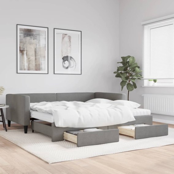 Sofa rozsuwana z szufladami, ciemnoszara, 100x200 cm, tkanina