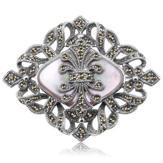 Staviori Broszka. Wisiorek. Masa Perłowa. Markazyty. Srebro rodowane 0,925. Wymiary 36x45 mm.