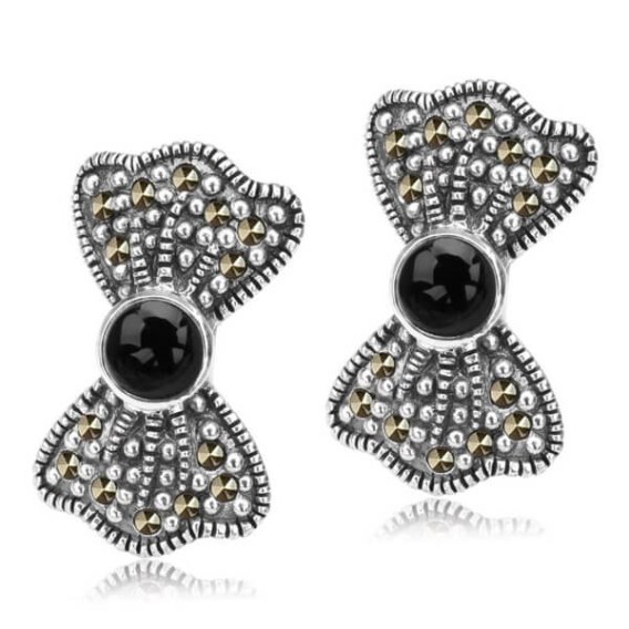 Staviori Kolczyki. Markazyty. Onyks. Srebro rodowane 0,925. Wymiary 14x23 mm.
