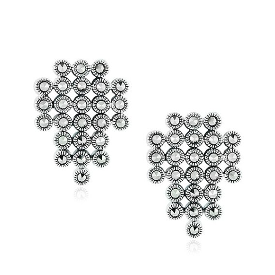 Staviori Kolczyki. Markazyty. Srebro 0,925. Długość 29 mm. Szerokość 21 mm. Grubość 4 mm.