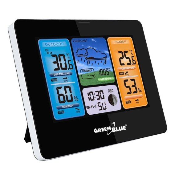 Stacja pogodowa WiFi GreenBlue, zgodna z TUYA, czujnik zewnętrzny, kalendarz, prognoza pogody, barometr, GB215