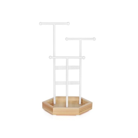 Stojak na biżuterię z drewna i stali, 3 poziomy, biały
