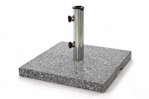 Solidny i szlachetny stojak na parasole wykonany z polerowanego granitu w połączeniu ze stalą nierdzewną. Stojak nadaje się do parasoli o średnicy do 3 metrów. Przymocuj parasol za pomocą śrub znajdujących się po bokach rury ze stali nierdzewnej. Opakowanie obejmuje 2 plastikowe pierścienie (używane do ewentualnego zwężenia) o średnicy wewnętrznej 45 lub. 35 mm do mocowania parasoli. Idealny na taras i ogród.