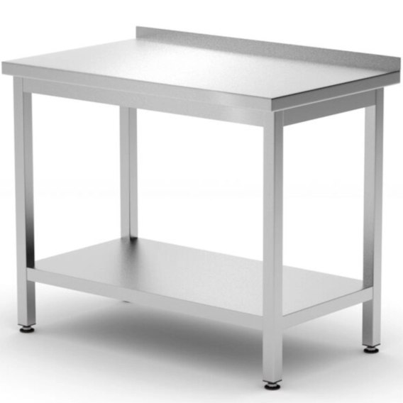 Stół blat roboczy przyścienny z rantem półką Budget Line STAL 800 x 600 x 850 mm - Hendi 817261