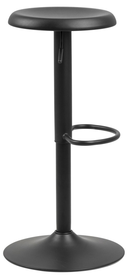 Stołek barowy Finch idealnie pasuje do nowoczesnej wyspy kuchennej, baru lub pubu. Siedzisko stołka zrobione jest z metalu malowanego proszkowo na czarno. Siedzisko jest matowe. Dzięki zastosowaniu metalu stołek jest bardzo trwały i uniwersalny. Stylowa metalowa noga tworzy z siedziskiem ciekawe połączenie. W połowie wysokości nogi został umieszczony efektowny podnóżek. Siedzisko jest obrotowe oraz ma regulowaną wysokość. Podstawa stołka jest malowana proszkowo na czarno.