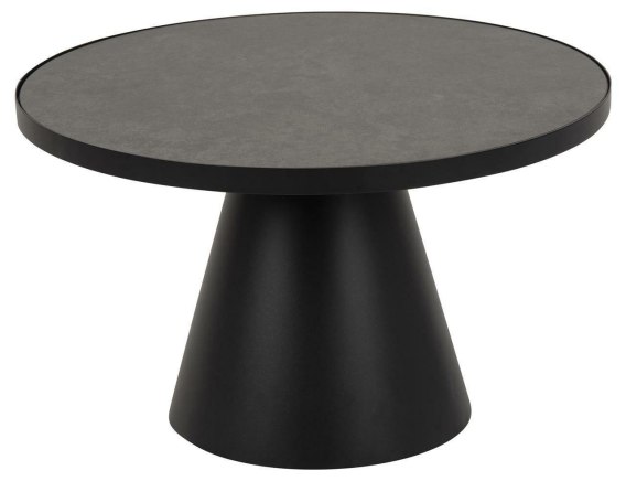 Stolik kawowy Soli to wzornictwo w stylu Art deco. Efektowny i geometryczny kształt stolika sprawdzi się nawet w niewielkim salonie. Okrągły blat został wykonany z ceramiki oraz szkła w kolorze szarym, a opiera się na czarnej rozszerzającej się podstawie o matowym wykończeniu. Dzięki temu mamy pewność, że jest to wytrzymały stolik kawowy, który posłuży nam długie lata.