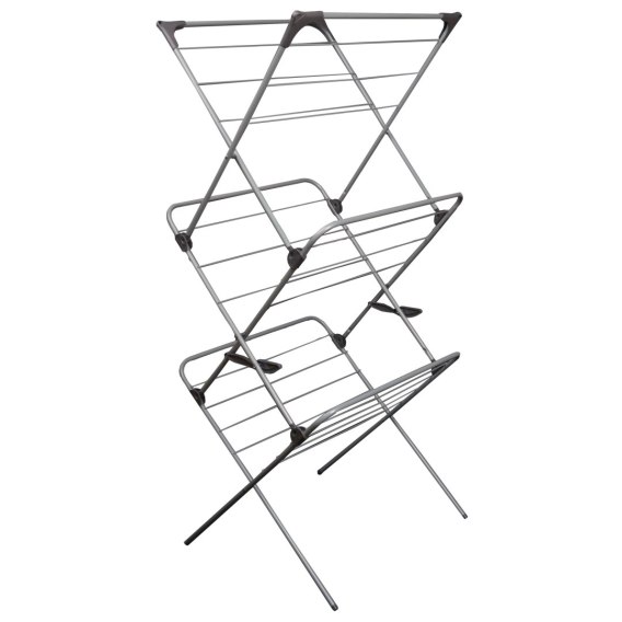 Suszarka pionowa jest idealnym rozwiązaniem dla osób, które pragną zaoszczędzić trochę miejsca w domu. Można zawiesić na niej około 15 metrów prania, dzięki 3 poziomom konstrukcji. Suszarka posiada także blokady przed samoistnym złożeniem, a jej zawiasy zabezpieczone są metalowymi nitami.