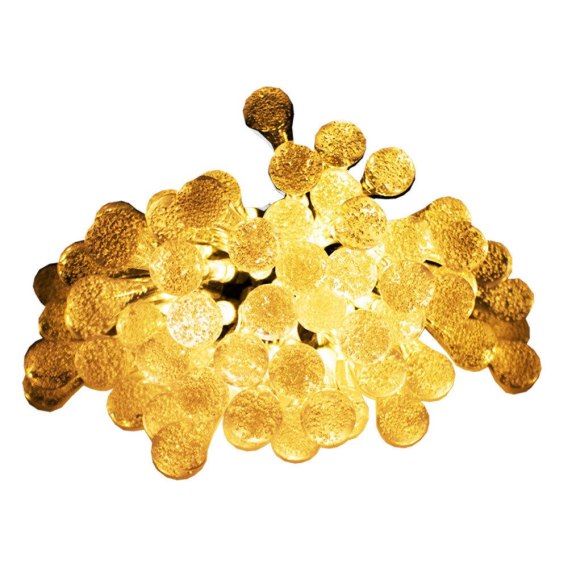 Łańcuch solarny idealnie dopasuje się do otoczenia i sprawi, że wokół Twojego domu atmosfera stanie się miła i ciepła. 60 diod LED świecą jasnym, ciepłym światłem, a możliwość zmiany oświetlenia pozwoli dopasować się do Twojego gustu. Łańcuch to aż 10 m światełek i jest ładowany za pomocą wbudowanego akumulatora za pomocą ogniw słonecznych - już nie musisz się martwić podłączeniem do prądu. Łańcuch działa na zasadzie lamp solarnych i gdy tylko zapada zmrok włącza się automatycznie. Pasuje do ogrodu, na taras, do namiotu imprezowego a także jako oświetlenie świąteczne.