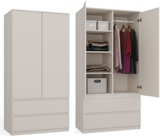 Czy cenisz nowoczesny design i funkcjonalność? Szafa Malwa SS-90 to wyjątkowy mebel, który sprawdzi się zarówno w sypialni, gdzie posiadasz garderobę, jak i w salonie czy pokoju dziecka, gdzie chcesz przechowywać ubrania i inne niezbędne rzeczy.