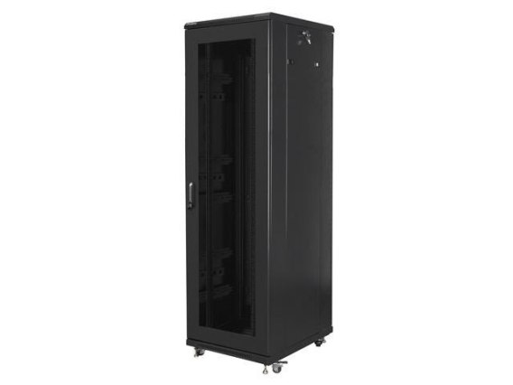 Szafa instalacyjna Rack stojąca 19" 42U 600x800 czarna drzwi perforowane Lanberg (flat pack)