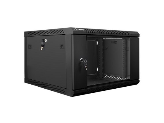 • Szafa jednosekcyjna Lanberg WF01-6606-10B (6U; 368mm / 600mm / 600 mm; wisząca; Szklane; 19''; kolor czarny)