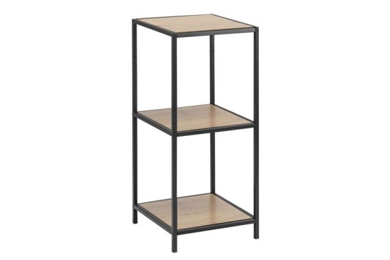 Szafka Seaford II wykonana została z metalu malowanego proszkowo oraz płyty MDF wykończonej laminatem w kolorze dębu.Waga: 6,7 kg. Wymiary kartonu: 9cm x 87,5cm x 39,5cm