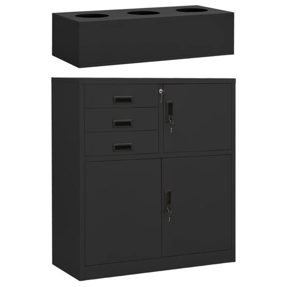 Szafka biurowa z doniczką, antracytowa, 90x40x125 cm, stalowa