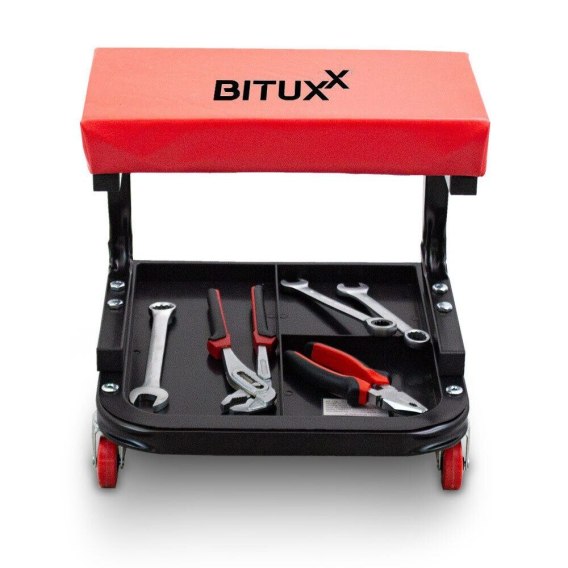 Uniwersalny taboret warsztatowy z szerokim siedziskiem to must have w Twoim garażu. Siedzisko jest szerokie, dzięki czemu sprawi, że użytkowanie taboretu będzie komfortowe. Wyposażony w 4 kółka na łożyskach pozwoli na przemieszczanie się podczas siedzenia, a obrót o 360 stopni ułatwi jazdę. Dodatkowa półka na narzędzia pod siedziskiem pozwoli na porządek wśród narzędzi podczas majsterkowania.