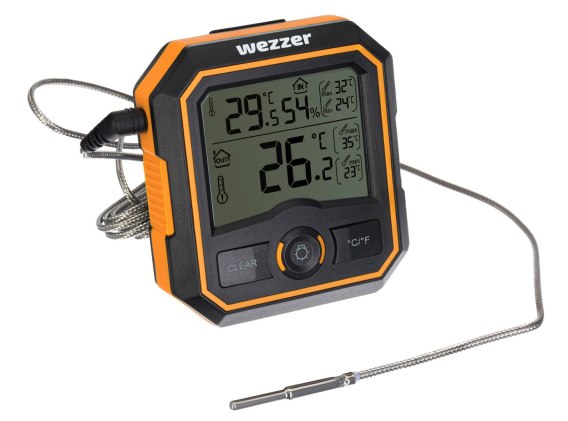 Termometr Levenhuk Wezzer SN20 to gadżet opracowany z myślą o monitorowaniu zmian temperatury w saunie. Urządzenie ma odłączaną przewodową sondę termiczną i może mierzyć temperaturę w dwóch miejscach jednocześnie. Urządzenie jest bardzo precyzyjne, wytrzymałe i niezawodne. Jest zasilane standardowymi bateriami.