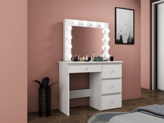 Toaletka biała z lustrem LED do makijażu - Diamond