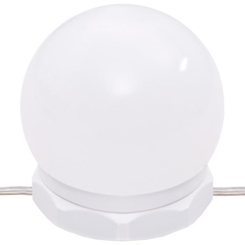 - Oświetlenie LED: stolik kosmetyczny z szafkami wyposażono w żarówki LED z USB, które można łatwo przełączać między ciepłą a zimną bielą. Rozmieszczone wokół lustra żarówki LED rozświetlą Twoje piękno.