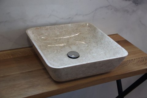 - 1x umywalka wykonana z kamienia naturalnego bez dekoracji, syfonu i baterii