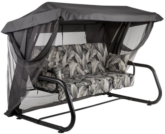 VENEZIA Huśtawka ogrodowa, metalowa, szara z liśćmi
