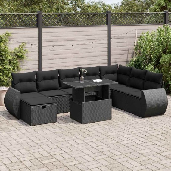 VidaXL 9-cz. zestaw wypoczynkowy do ogrodu, z poduszkami, czarny