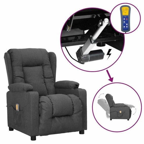 VidaXL Podnoszony fotel masujący, ciemnoszary, tkanina